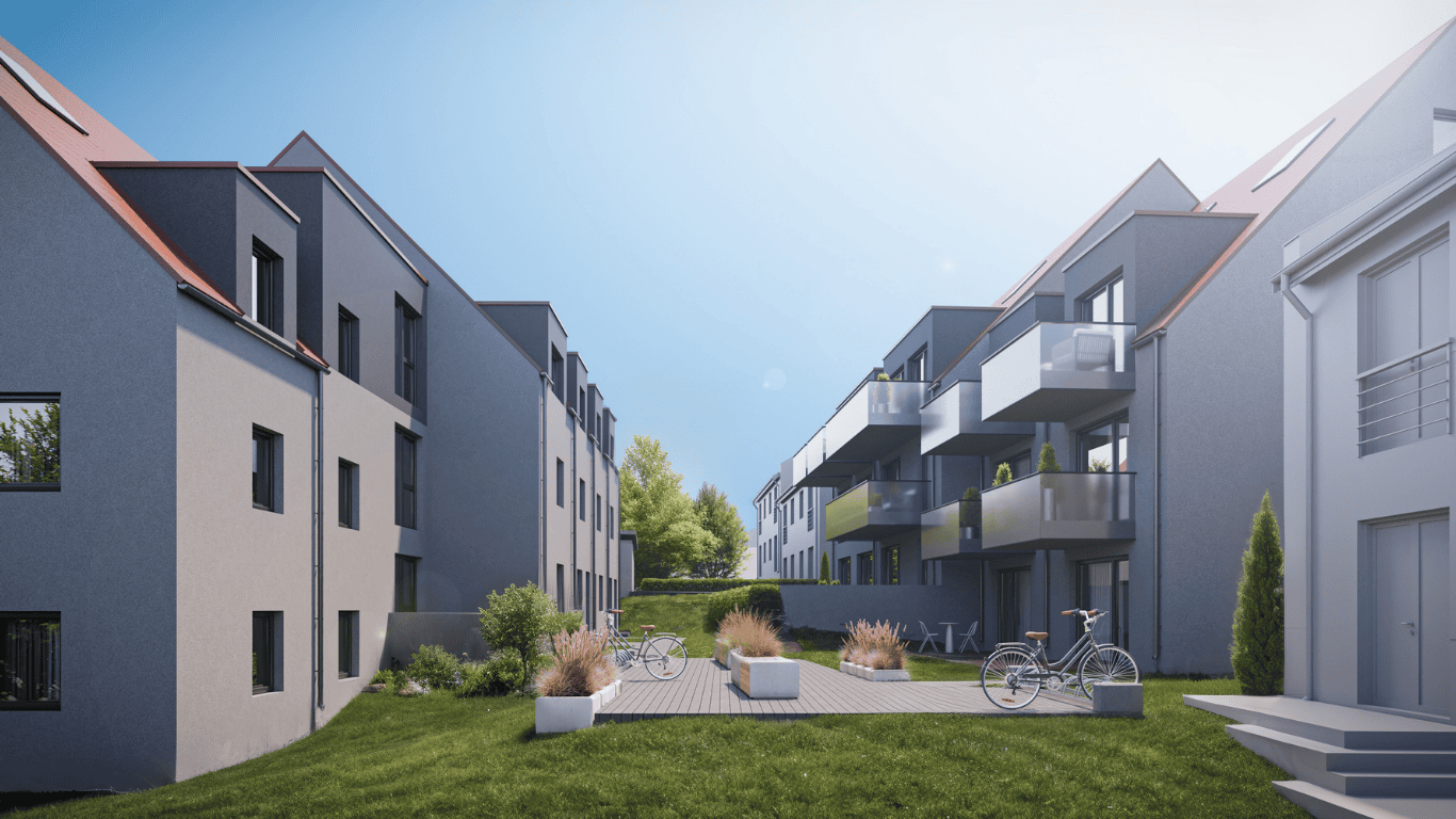 Unsere beiden hintereinander angeordneten Townhouses befinden sich in unmittelbarer Nachbarschaft eines denkmalgeschützten, historischen Gutshofes. Großzügige, offene Schnitte, bodentiefe Fenster und hochwertige Materialien verwandeln Ihr neues Zuhause in eine echte Wohlfühloase! Besonders attraktiv sind natürlich die behaglichen Maisonettewohnungen…Wohnungen mittlerer Größe mit Galerie etwa – eine nachhaltige Investition mit echtem Mehrwert.